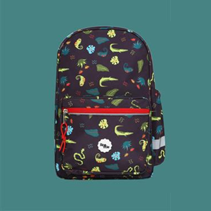 Made with 100% recycled polyester with reflective details, front zip pocket, internal mesh pocket, a name label and external water bottle pocket. To ensure it’s durability, find a DWR finish and wipe clean fabrics.
